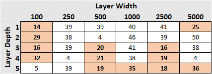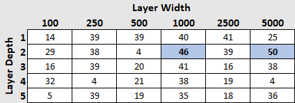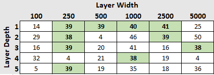 What’s surprising to me is the over-representation of the 5-layer-deep networks. Before the start of this little experiment, I would have expected the largest, most complex models to perform best. While the 5×5000 model consistently wins over half its games it is much more variable than the more consistent group examined above. The 5×5000, in fact, ranges in wins from 28-41, with its most recent 3-game-average at 36.